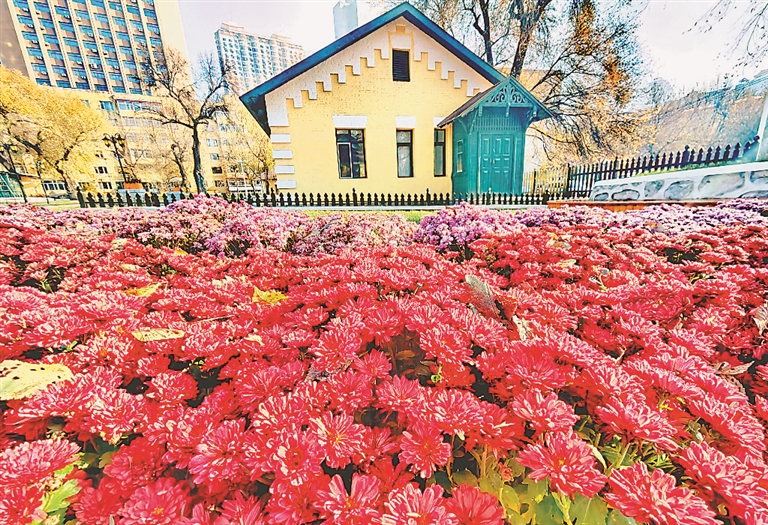 近日,哈爾濱市南崗區(qū)花園街旁,游客在修繕一新的“黃房子”前拍照留念。在滿地落葉襯托下,這些黃墻紅頂?shù)臍v史建筑更顯厚重感。房子周?chē)O(shè)有休閑座椅、歐式路燈、花壇、綠地等,方便人們散步、賞景。本報(bào)記者 蘇強(qiáng)攝