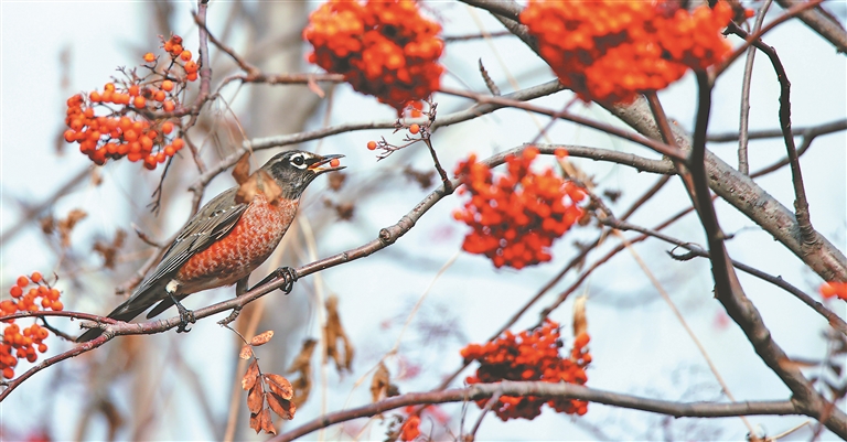 近日,幾只“小精靈”在哈爾濱市音樂公園的花楸樹叢被市民拍到。經過東北林業(yè)大學野生動物與自然保護地學院教授許青等鳥類專家對比辨認,確認這種鳥為來自美洲大陸的候鳥旅鶇。連日來,各地觀鳥人紛至沓來,守在樹旁拍攝、觀賞。