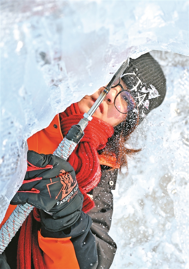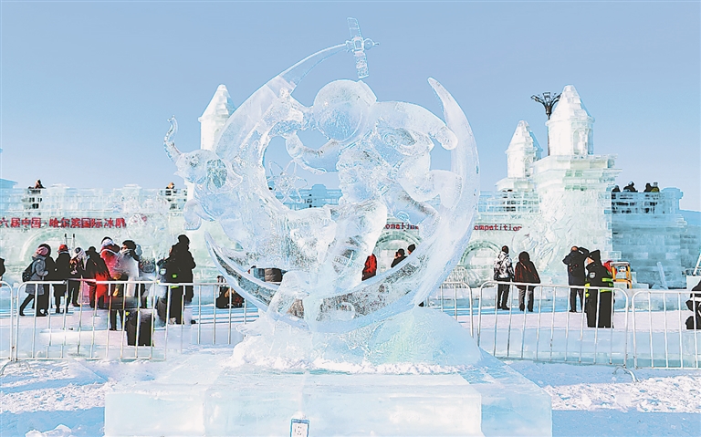 本屆比賽吸引了來自中、俄、美、法等12個(gè)國家的30支冰雕隊(duì)參賽。《卷藏童趣》以兒童求知為主題,用幼童勤奮讀書、與書為友的畫面,刻畫出其對知識(shí)的渴望。本報(bào)記者 郭俊峰攝