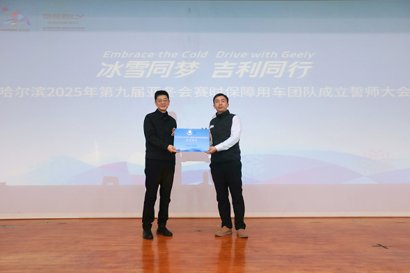 在莊重而熱烈的氛圍中,現(xiàn)場隆重舉行了乘用車保障團(tuán)隊授旗儀式。駕駛員們整齊列隊,許下了鄭重的承諾:“精準(zhǔn)調(diào)度,安全駕駛,嚴(yán)格守時,真情服務(wù)。高效整備,細(xì)致維護(hù),保障有力,穩(wěn)健運(yùn)行。全力實現(xiàn):零投訴、零延誤、零事故。用真情護(hù)航,用智慧開道,冰雪同夢,吉利同行。”