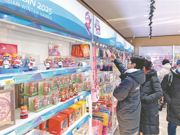 本報(bào)訊(記者郭俊峰)亞冬會(huì)即將開幕,位于哈爾濱國(guó)際會(huì)展體育中心亞冬會(huì)主媒體中心一層的特許商品零售店內(nèi)人聲鼎沸,亞冬會(huì)吉祥物玩偶、冰雪運(yùn)動(dòng)徽章、琉璃冰壺等300余款特許商品引發(fā)搶購(gòu)熱潮。火炬系列限量版紀(jì)念品、亞冬會(huì)徽章、“濱濱”“妮妮”火炬?zhèn)鬟f紀(jì)念冰箱貼等極具收藏價(jià)值的限量版特許商品更是熱銷貨。