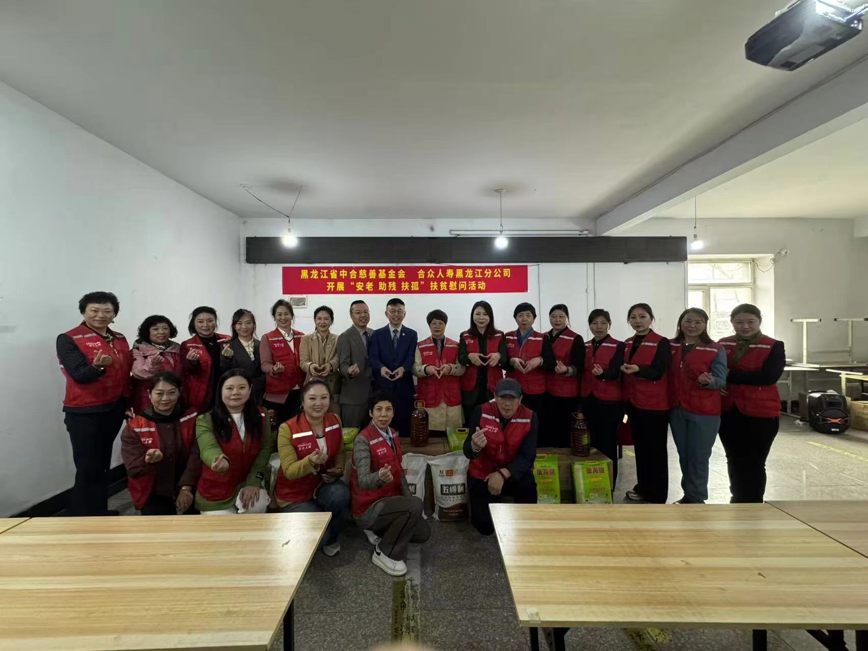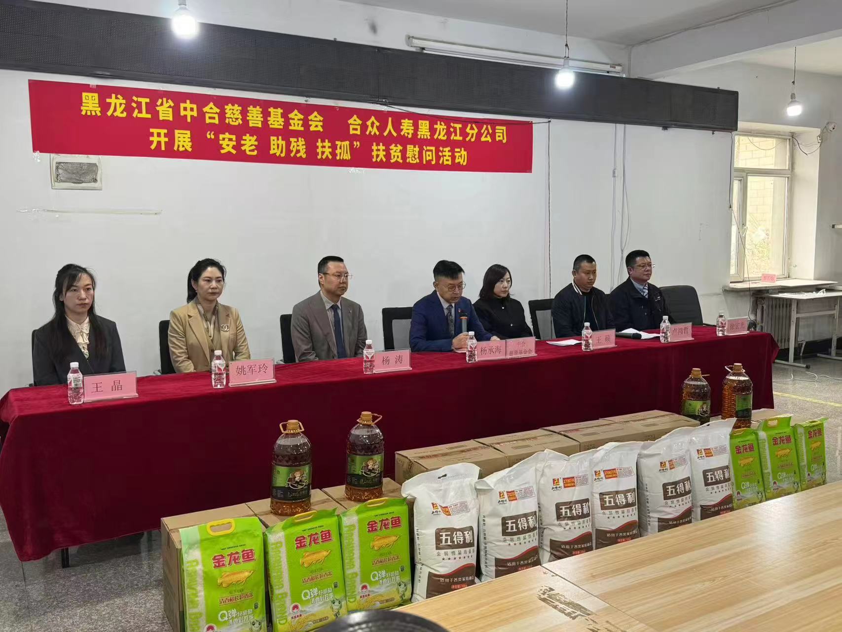 5月7日,合眾人壽黑龍江分公司2025年度“安老、助殘、扶孤”慰問活動啟動儀式在新發(fā)鎮(zhèn)二場村村委會舉行。新發(fā)鎮(zhèn)30位特殊群體代表,民政局領(lǐng)導(dǎo),新發(fā)鎮(zhèn)政府領(lǐng)導(dǎo),合眾人壽黑龍江分公司黨支部書記、總經(jīng)理楊承海,個險分管總楊濤,銀行保險負(fù)責(zé)人姚軍玲,哈爾濱營銷管理本部總經(jīng)理王晶,行政部經(jīng)理徐宏光及30余位業(yè)務(wù)人員參加此次活動。