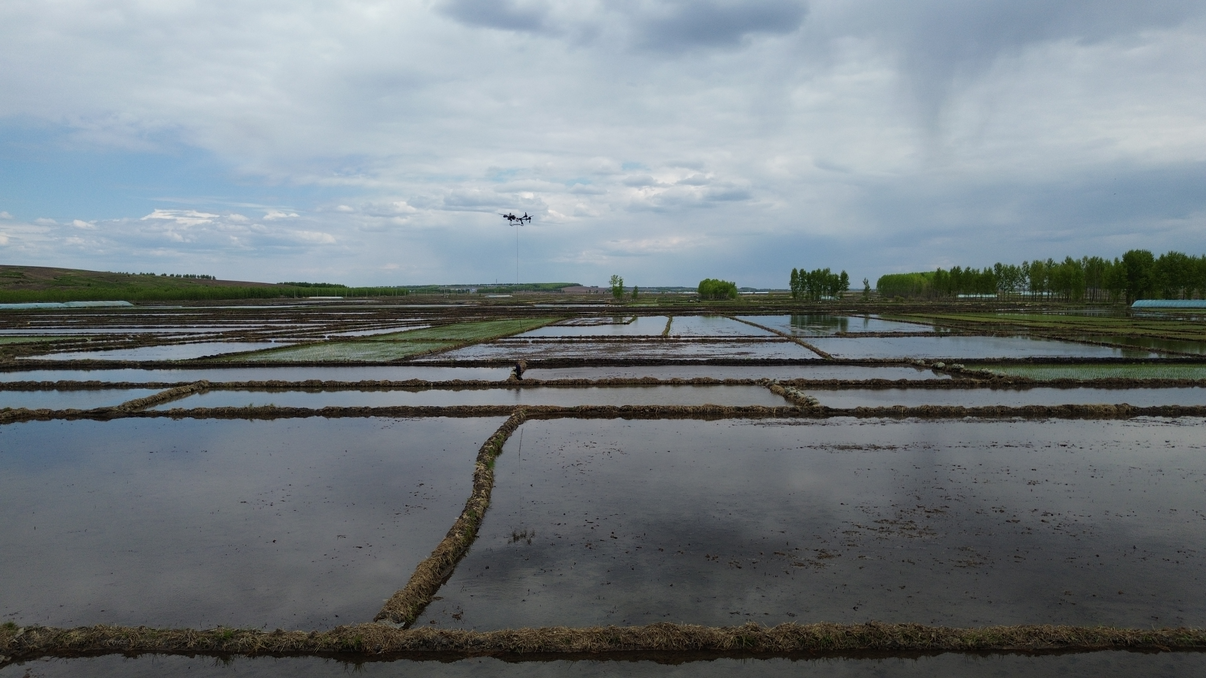 在光榮鄉(xiāng)1.4萬畝稻田區(qū),機械化作業(yè)與智能設(shè)配的配合成為春耕焦點。在水田作業(yè)現(xiàn)場,插秧機勻速行進,秧苗以均勻的間距和深度整齊入泥;無人機則沿規(guī)劃航線精準(zhǔn)運送秧苗箱,實現(xiàn)了從“人工運秧”到“空中補給”的升級。機械化作業(yè)確保了株距、深度的標(biāo)準(zhǔn)化,為秧苗的扎根生長奠定基礎(chǔ)。放眼望去,成行的秧苗如綠色線條在田野鋪展,很是壯觀。