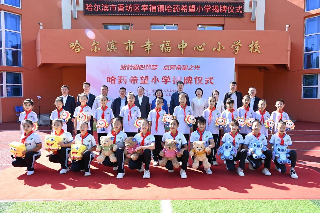 隨后,領導嘉賓為哈爾濱市香坊區(qū)幸福鎮(zhèn)哈藥希望小學揭牌,標志著這所學校將以嶄新面貌,承載更多夢想與希望,開啟新的篇章。