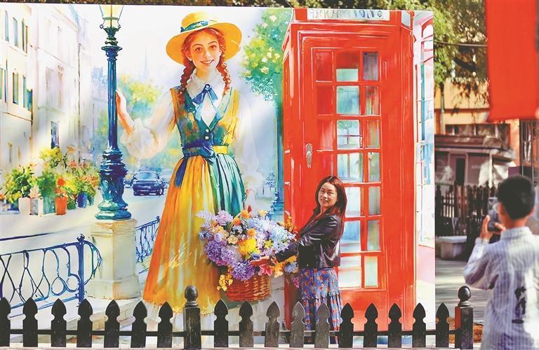 2日,哈爾濱市南崗區(qū)花園街歷史文化街區(qū),節(jié)日氣氛濃厚,游客們紛紛在“黃房子”旁打卡拍照。