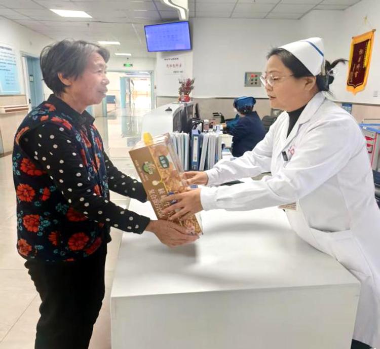 禮品雖小,情意濃重。開展活動期間,醫(yī)護人員們帶著精心準備的小禮品,走進每一位60歲以上老年患者的病房。這些小禮品雖然價格并不昂貴,但卻飽含著對患者的深深祝福。柔軟舒適的保暖襪,為患者在漸冷的霜降時節(jié)增添一份溫暖;營養(yǎng)豐富的滋補品,助力患者增強身體抵抗力;寓意吉祥的平安符,寄托著對患者早日康復的美好期許。當醫(yī)護人員將一份份小禮品送到患者手中時,患者們的臉上都洋溢著驚喜與感動的笑容,紛紛對科室的貼心關懷表示感謝。患者劉阿姨激動地說:“在這個特殊的節(jié)日里,收到你們送的禮物,心里特別溫暖”。