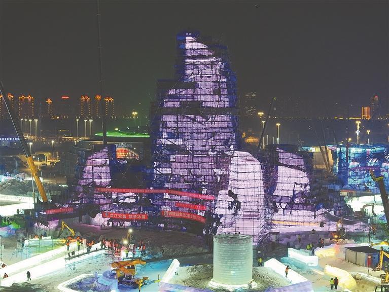 作為目前全球規(guī)模最大的冰雪主題園區(qū),本屆哈爾濱冰雪大世界總用冰量、用雪量雙雙刷新紀(jì)錄。施工現(xiàn)場(chǎng),上萬名來自龍江安裝集團(tuán)的建設(shè)者在低溫中晝夜奮戰(zhàn),18個(gè)冰建工區(qū)、5個(gè)雪建工區(qū)同步推進(jìn),園區(qū)建設(shè)已完成70%。