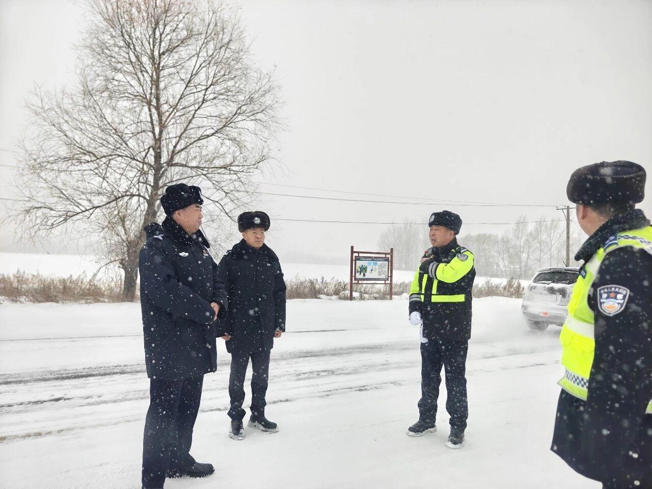 黑龍江經(jīng)濟(jì)網(wǎng)訊(李寶 記者梁新立)12月19日,五大連池市遭遇強(qiáng)降雪天氣。為筑牢道路安全防線,保障極端惡劣天氣下道路交通平穩(wěn)有序,五大連池市公安局政委王秀東深入一線實地督導(dǎo)強(qiáng)降雪天氣道路交通安全管理工作,副局長李繼偉及相關(guān)負(fù)責(zé)同志陪同。
