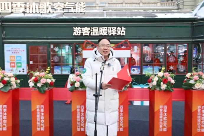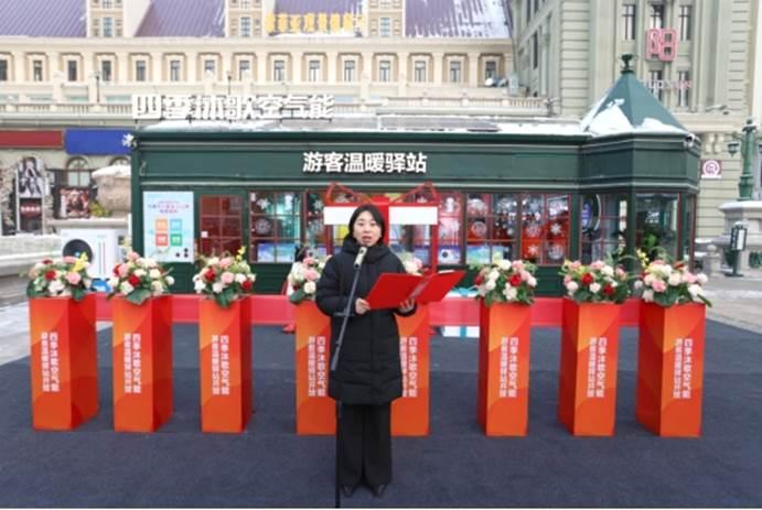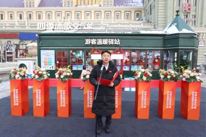 共青團(tuán)哈爾濱市委副書記徐翎致辭時指出,哈爾濱以“世界冰雪旅游卓越城市”之姿驚艷全球,這一火熱盛況背后,也讓四季沐歌集團(tuán)連續(xù)三年傾力打造游客溫暖驛站的堅守與付出,收獲了高度肯定,企業(yè)以科技暖意驅(qū)散凜冬嚴(yán)寒、用清潔能源護(hù)航八方游客、以“雙碳”使命點(diǎn)亮城市溫度的責(zé)任擔(dān)當(dāng)更贏得社會廣泛贊許。她表示,團(tuán)市委將以游客溫暖驛站為紐帶,廣泛匯聚青春動能和社會力量,為驛站建設(shè)添磚加瓦,也真誠呼吁各界持續(xù)關(guān)注溫暖驛站發(fā)展、支持哈爾濱青年發(fā)展型城市建設(shè),攜手為冰城高質(zhì)量振興注入青春動能。
