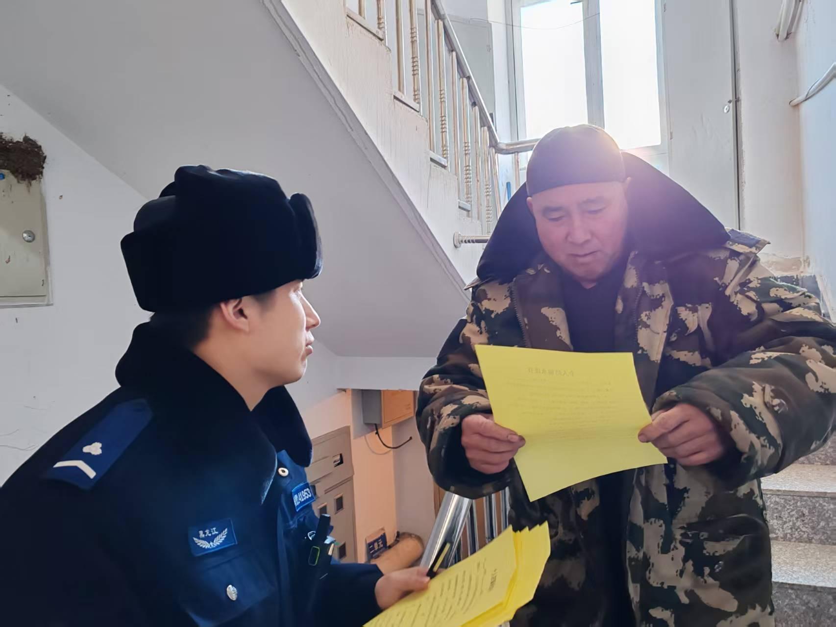 黑龍江經(jīng)濟網(wǎng)訊(婁暢)新春佳節(jié)將至,為切實守護好轄區(qū)群眾的“錢袋子”,讓居民度過一個平安、祥和、歡樂的新年,近日,呼瑪縣公安局緊抓歲末年初詐騙案件易發(fā)多發(fā)的關(guān)鍵節(jié)點,組織警力深入社區(qū),開展以“迎新春、送平安、防詐騙”為主題的入戶走訪宣傳活動,將反詐防騙的“安全錦囊”作為特殊的新年禮物送到千家萬戶。