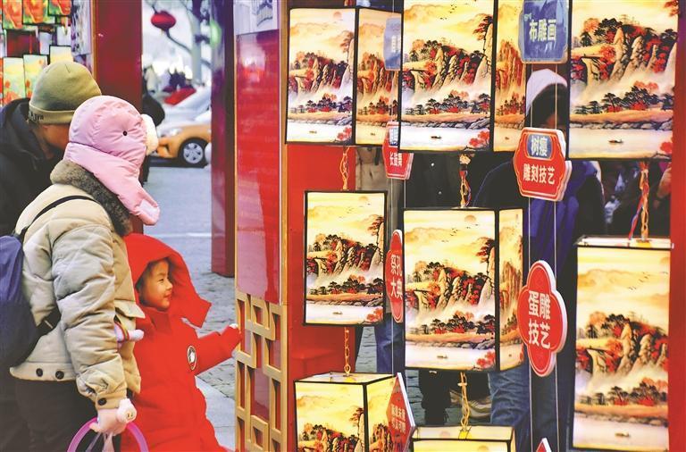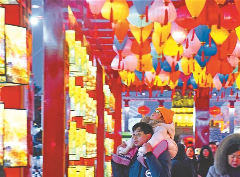臨近春節(jié),哈爾濱市道里區(qū)松花江畔,一組以“大美龍江·非遺季”為主題的彩燈點亮,吸引許多游客駐足觀看、拍照。現(xiàn)場懸掛的近千盞彩燈有多種顏色,烘托出濃濃的喜慶氣氛。彩燈扮靚了江畔,也為冰城再添一處美景。