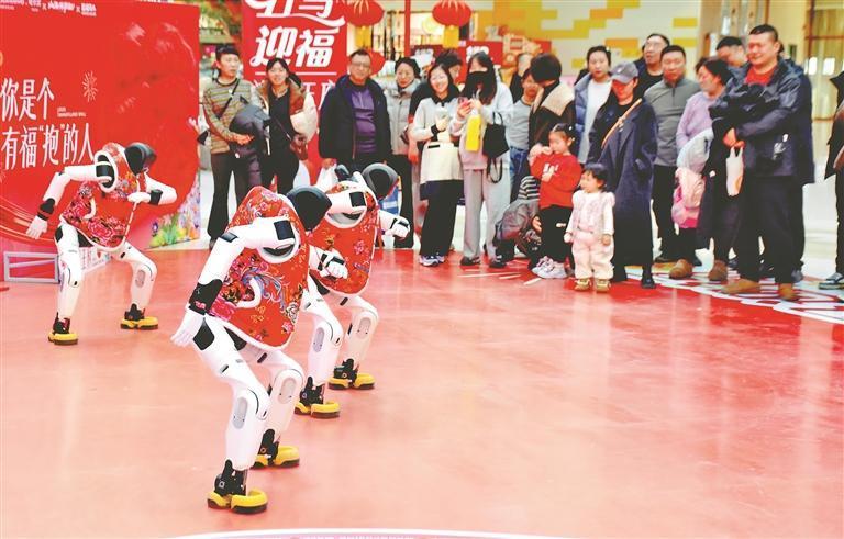 19日,正月初三。哈爾濱市道里區(qū)一家大型商場(chǎng)舉行了機(jī)器人舞蹈表演,吸引許多市民游客駐足觀(guān)看。走進(jìn)場(chǎng)地的三個(gè)機(jī)器人身高1.5米左右,穿著紅色棉坎肩,十分喜慶。在音樂(lè)伴奏下,它們翩翩起舞,動(dòng)作整齊劃一。表演結(jié)束后,機(jī)器人走進(jìn)人群,與大家握手、合影、互動(dòng)。春節(jié)假期,哈爾濱市多家商場(chǎng)都推出了機(jī)器人表演,讓市民游客與最新科技來(lái)個(gè)親密接觸。