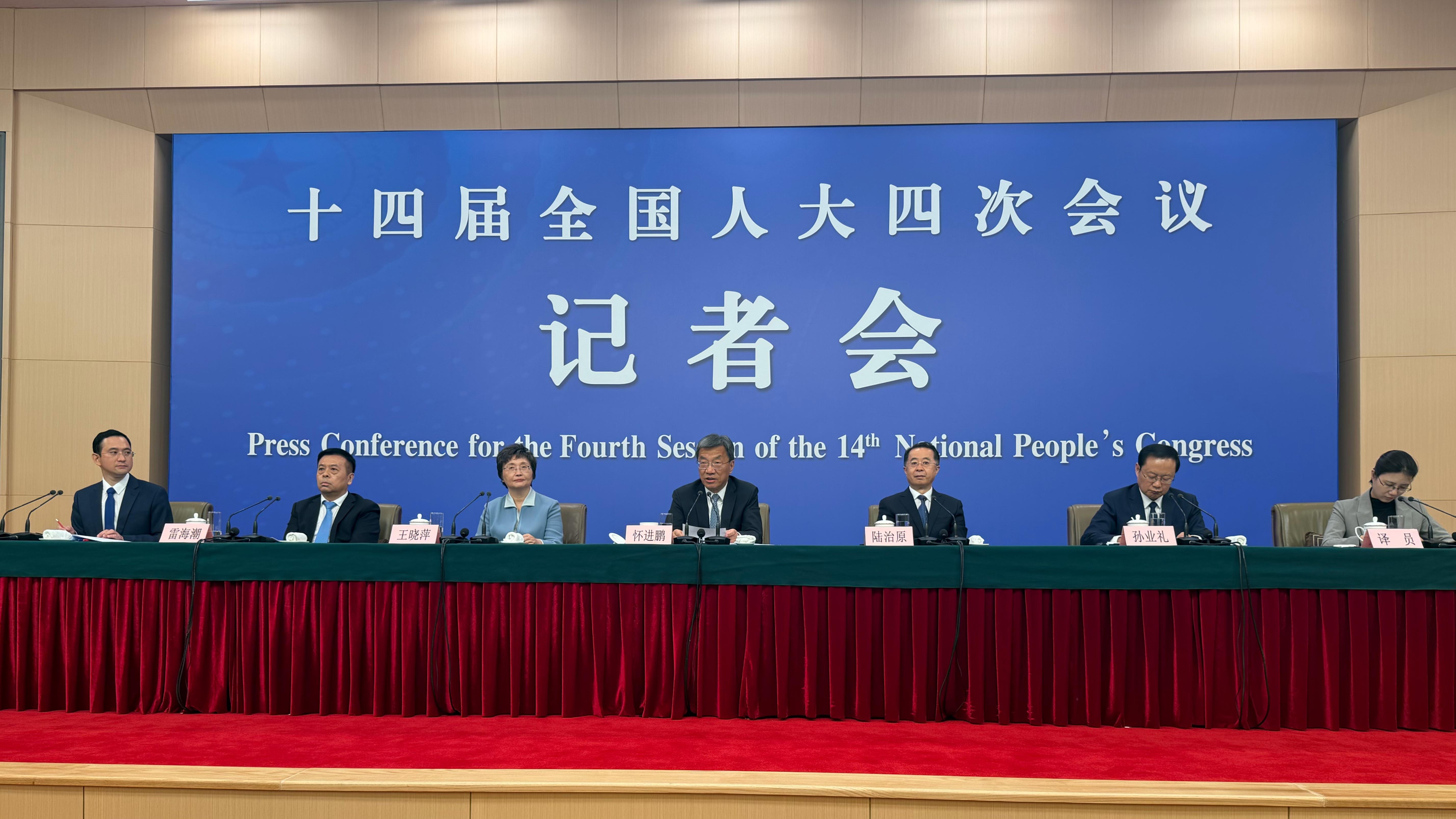 3月7日,十四屆全國人大四次會議在梅地亞中心舉行民生主題記者會。教育部部長懷進鵬、民政部部長陸治原、人力資源社會保障部部長王曉萍、文化和旅游部部長孫業(yè)禮、國家衛(wèi)生健康委員會主任雷海潮就就業(yè)、養(yǎng)老、文旅等相關(guān)問題答記者問。????