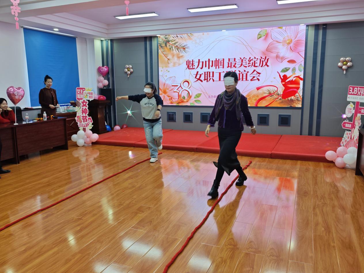互動(dòng)游戲環(huán)節(jié)同樣妙趣橫生,“桃花朵朵開(kāi)”“漏框接氣球”“蒙眼走繩子”“蒙眼喝飲料”等趣味項(xiàng)目,讓女職工們暫時(shí)卸下工作壓力,在比拼中增進(jìn)情誼,在歡聲笑語(yǔ)中放松身心。現(xiàn)場(chǎng)加油聲、喝彩聲此起彼伏,持續(xù)將活動(dòng)氛圍推向高潮。