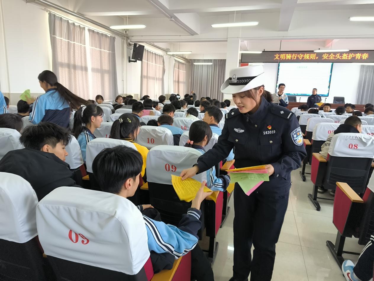 考慮到高中生群體的特點,且部分學(xué)生上下學(xué)有騎行電動自行車的需求,在宣講現(xiàn)場,民警用通俗易懂的語言、貼近校園周邊的案例,圍繞電動自行車駕乘安全這一核心,展開交通安全知識講解。并通過播放典型事故案例視頻,以案說法,直觀展示了未佩戴頭盔在發(fā)生碰撞時頭部遭受致命傷害的慘痛后果,以及多人合乘一輛車、追逐打鬧等行為帶來的失控風(fēng)險?;顒蝇F(xiàn)場還設(shè)置了互動問答環(huán)節(jié),同學(xué)們踴躍參與,在輕松氛圍中鞏固了“知危險、會避險”的交通安全知識。